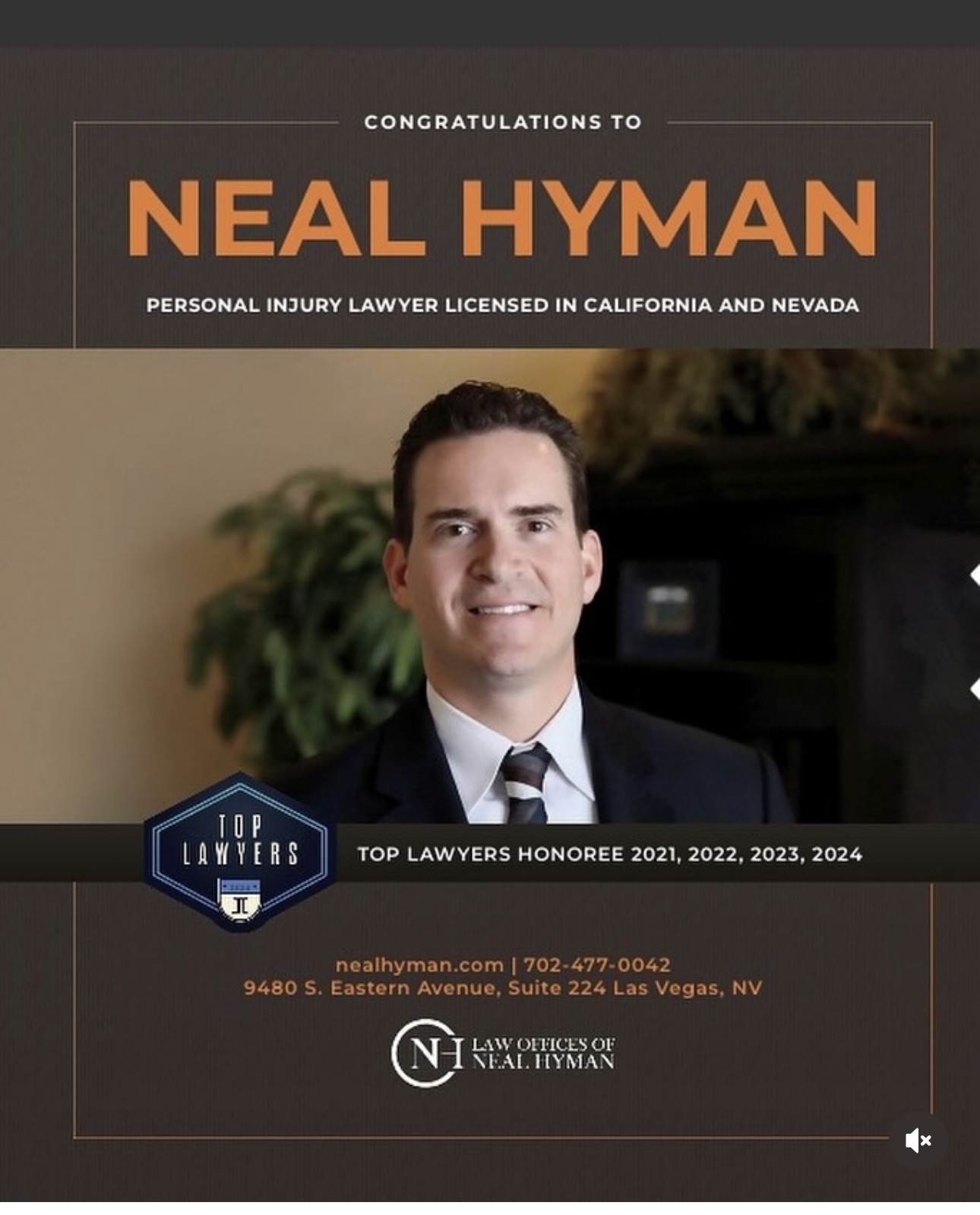 â—ŠNeal Hyman was named a Top Personal Injury Lawyer by Vegas, Inc. for 2023 – third year in a row. Read here